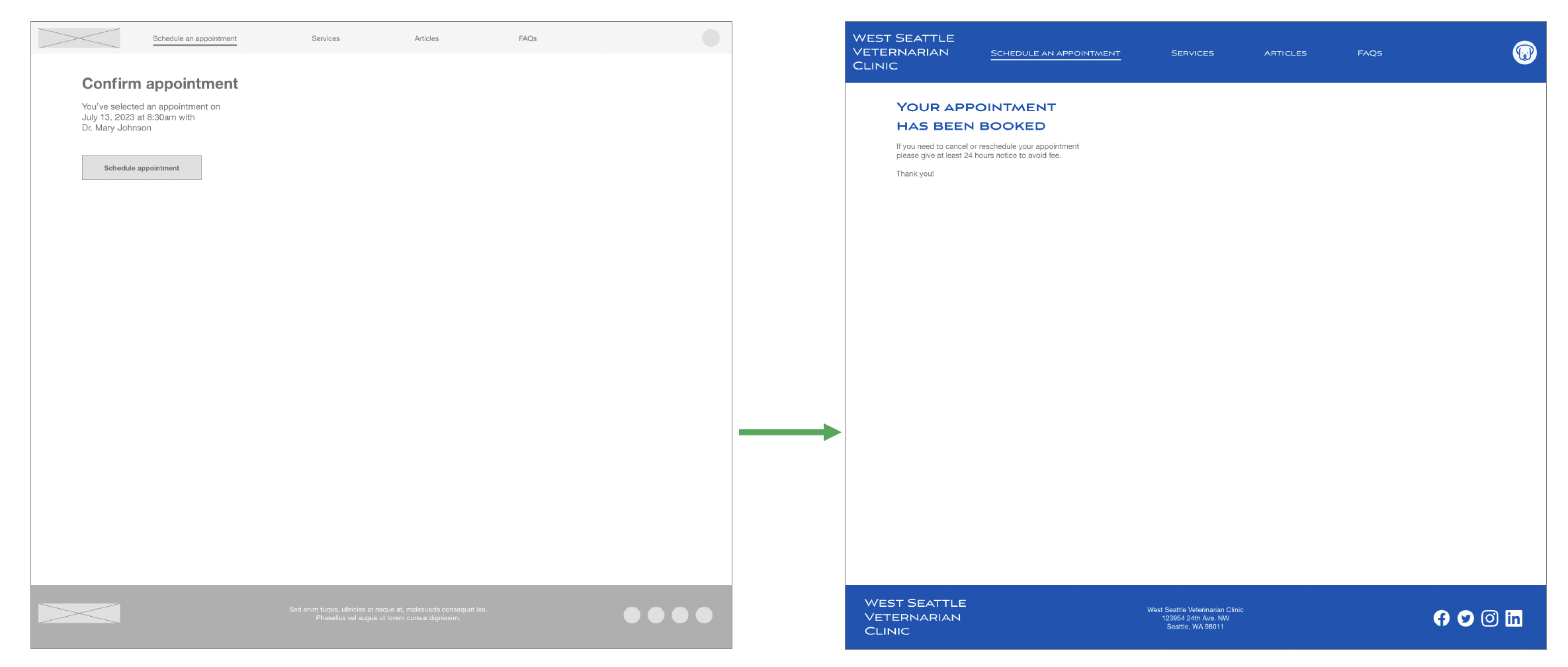 In my low fidelity designs I didn't have a large button to schedule an appointent. I added this in my high fidelity designs.
